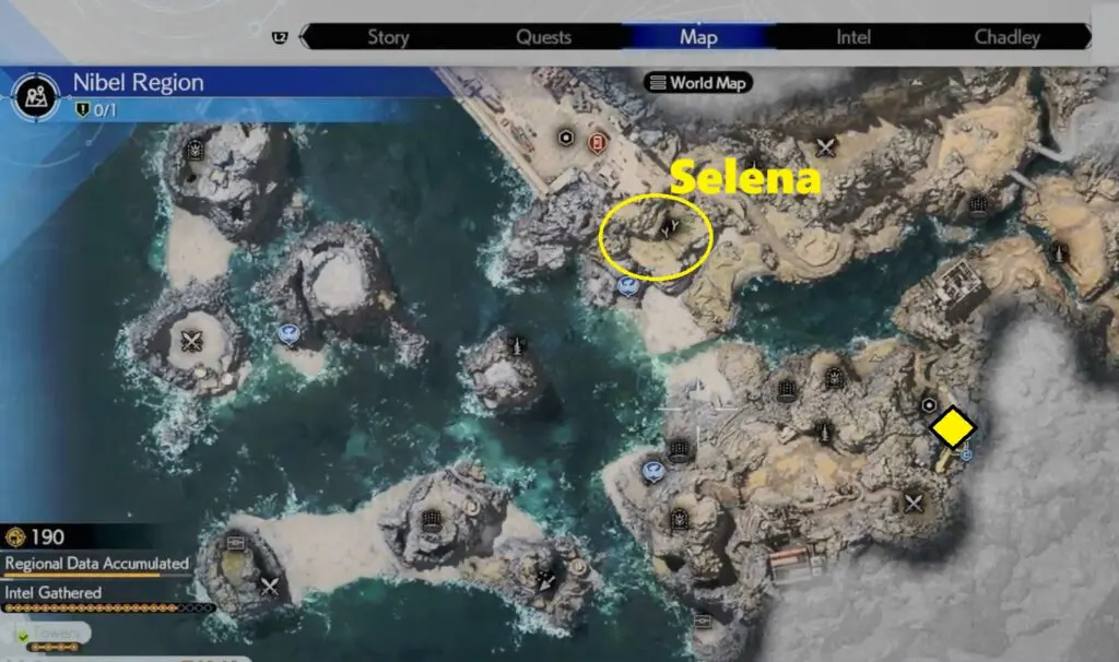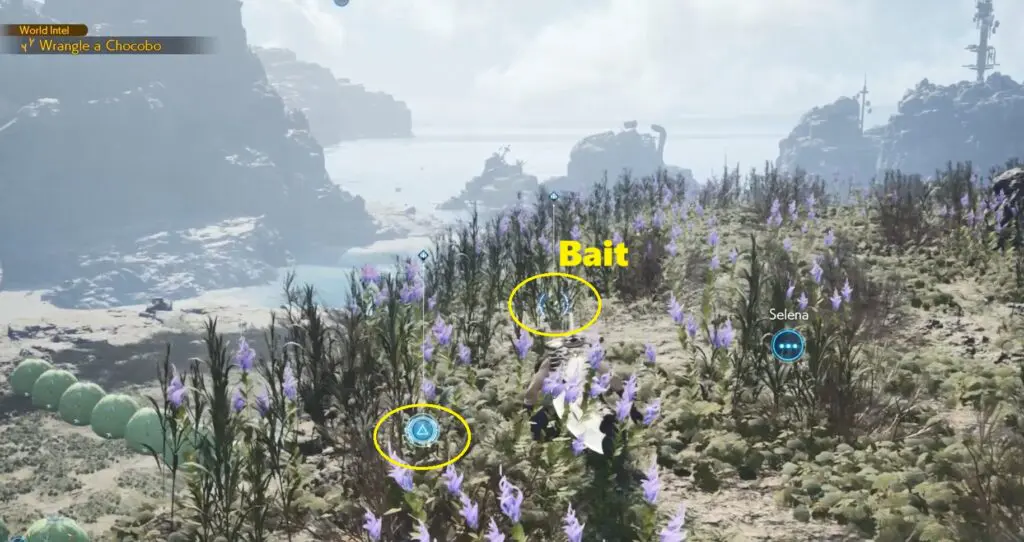 The location of the Chocobo Selena is marked on the map below. It is east of Nibel Airstrip. To catch Chocobo Selena you need to throw bait to lure it near you.