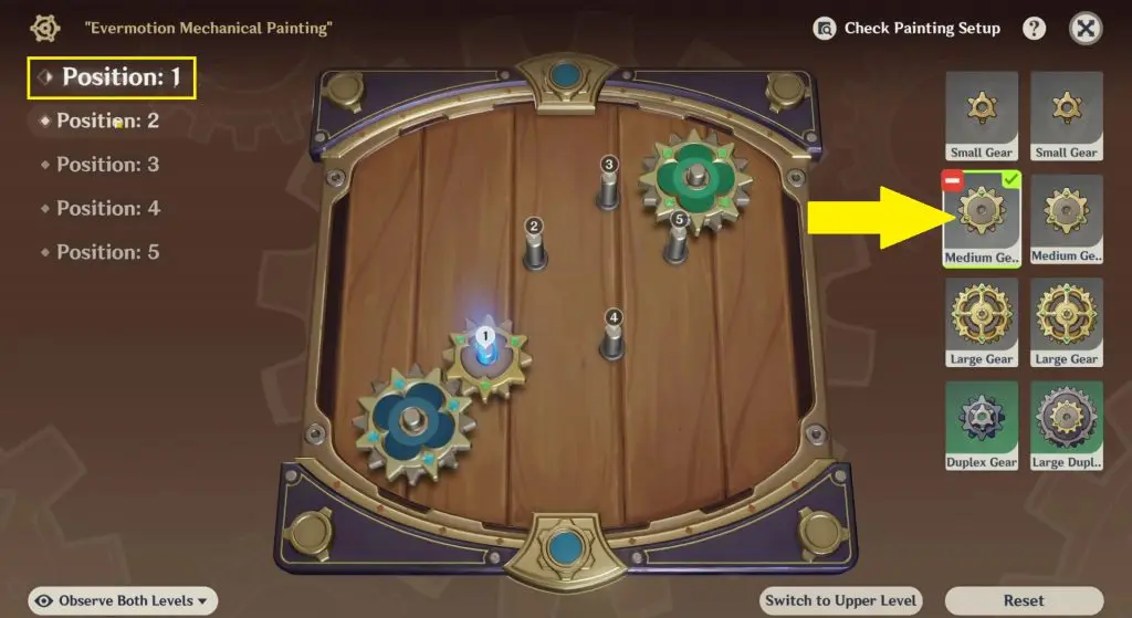 Step 2: Select Position 1 and place Medium Gear as shown in the picture below.
