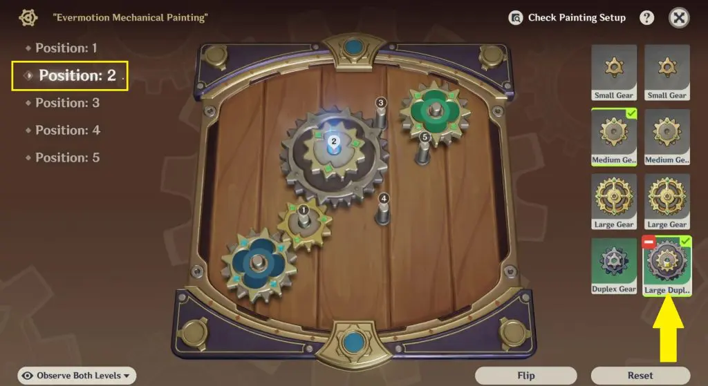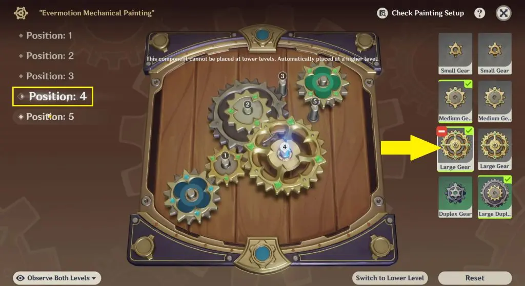 Step 4: Select Position 4 and place a Large Gear as shown in the picture below.