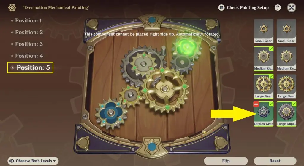 Step 5: Select Position 5 and place the Duplex Gear as shown in the picture below. This will complete the puzzle.
