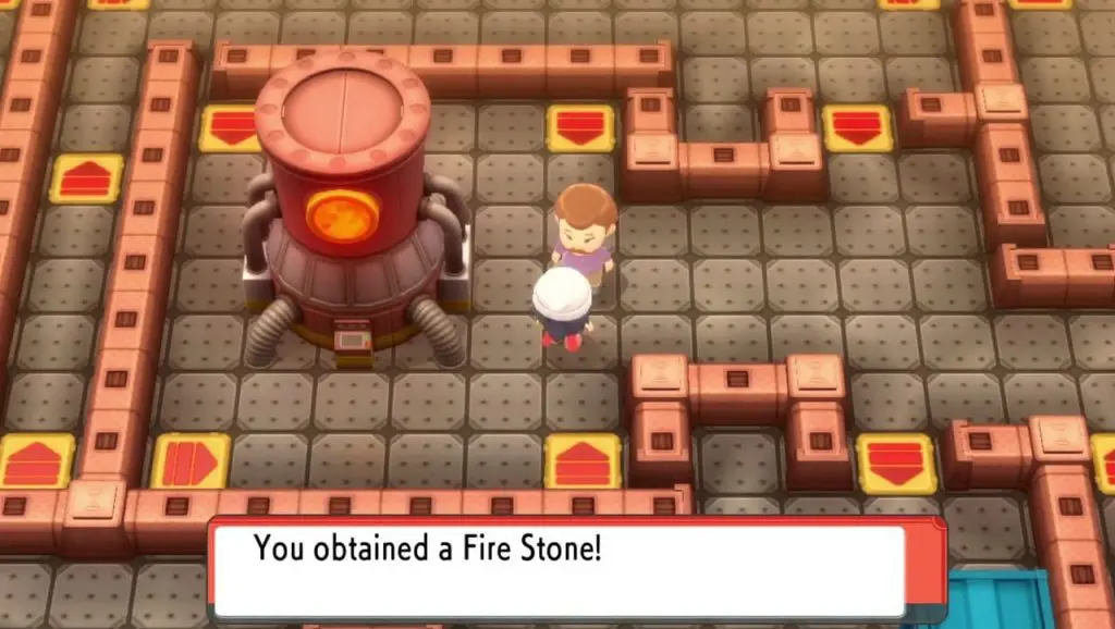 Head to Route 205 from Floaroma Town. Then start surfing in the river, and this will take you through a long river path. Go inside the Fuego Ironworks building on the northern side. Make your way through the spinning floor tiles you can find a Fire Stone next to the far right wall.