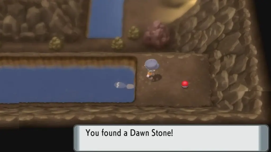 You can also find Dawn Stones inside Mount Coronet. Head into Mt Coronet from Route 207 which is located north of Oreburgh City. Go to the bottom of the screen, then surf on the patch of water next to the smashable rocks. On the other side, you will find a Dawn Stone.