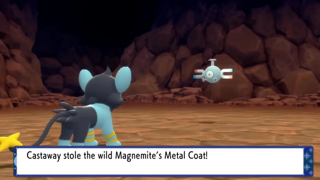 You can also get a Metal Coat by stealing it from Magnemite. To steal, you will need ‘Thief’ TM. You will find Magnemite in the Grand Underground. Put Steel-type mods in your secret base to increase the chances of Magnemite spawning.