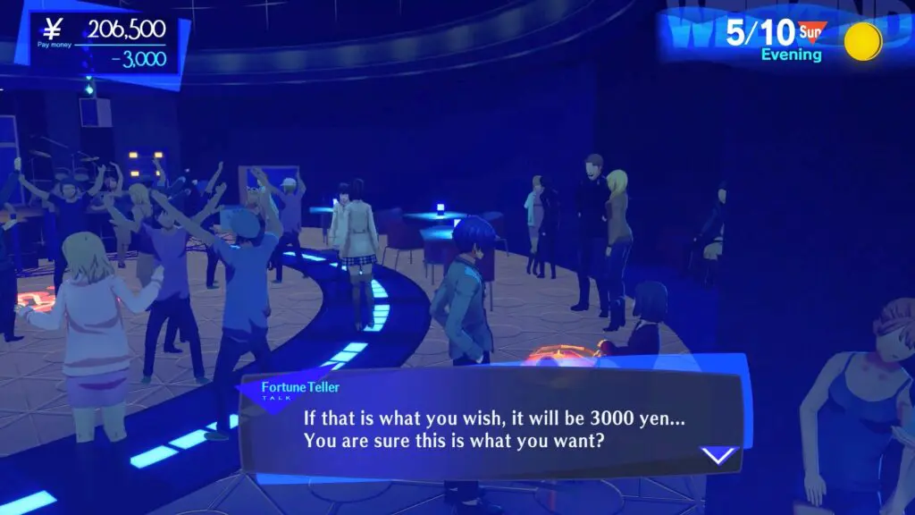 Go to Club Escapade and speak with the fortune-teller. Buy Rarity Fortune from a fortune-teller for 3,000 yen.