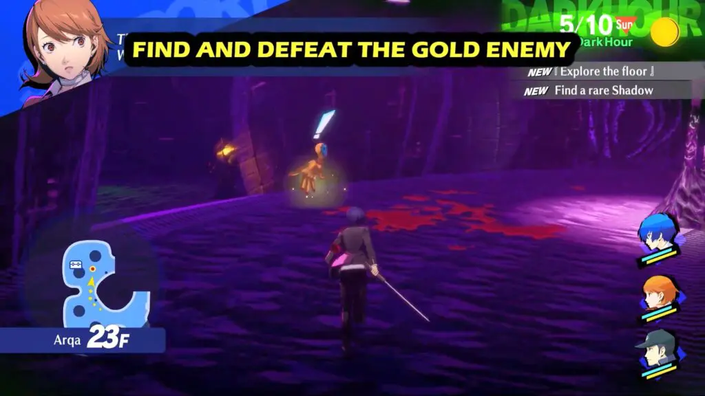 Go to 21F and above and look for Rare Golden enemies. Defeat the Golden Shadows and report back to Elizabeth.