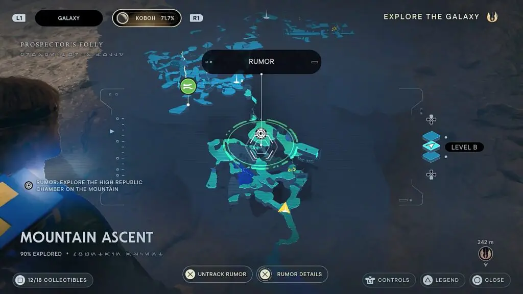 This guide shows how to complete the Explore The High Republic Chamber on the Mountain Rumor in the Star Wars Jedi: Survivor game, released on 28th April 2023. To complete this rumor, you will need to collect the essence in the Chamber of Detachment in Mountain Ascent. This guide will show how to get all the collectibles in the Chamber of Detachment.