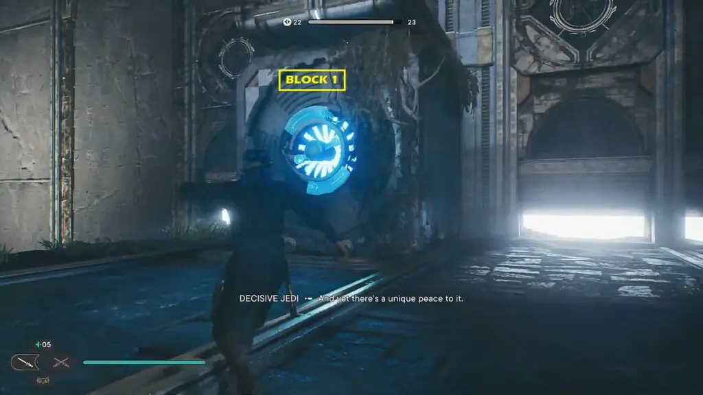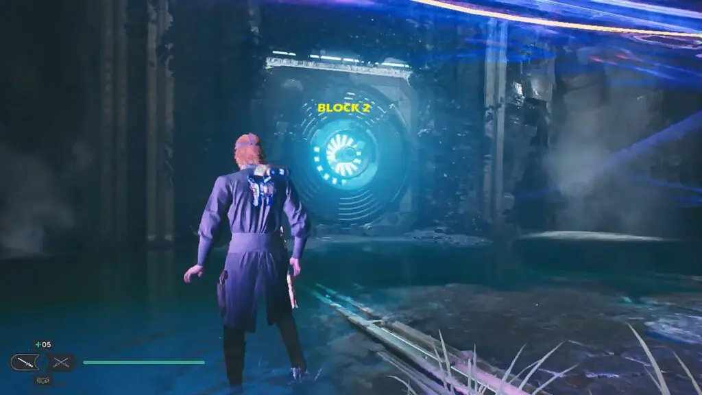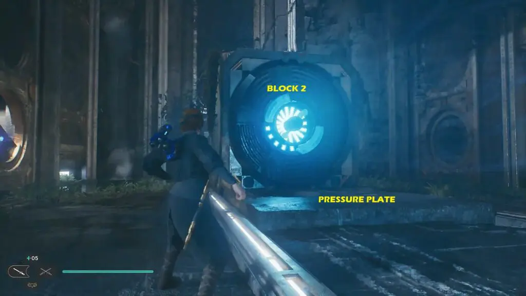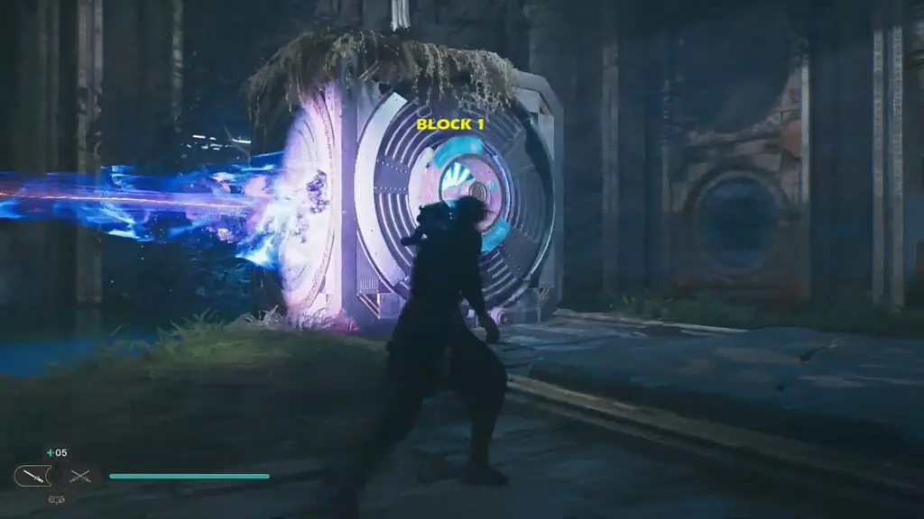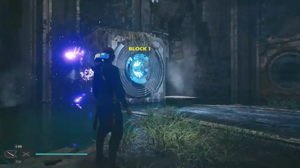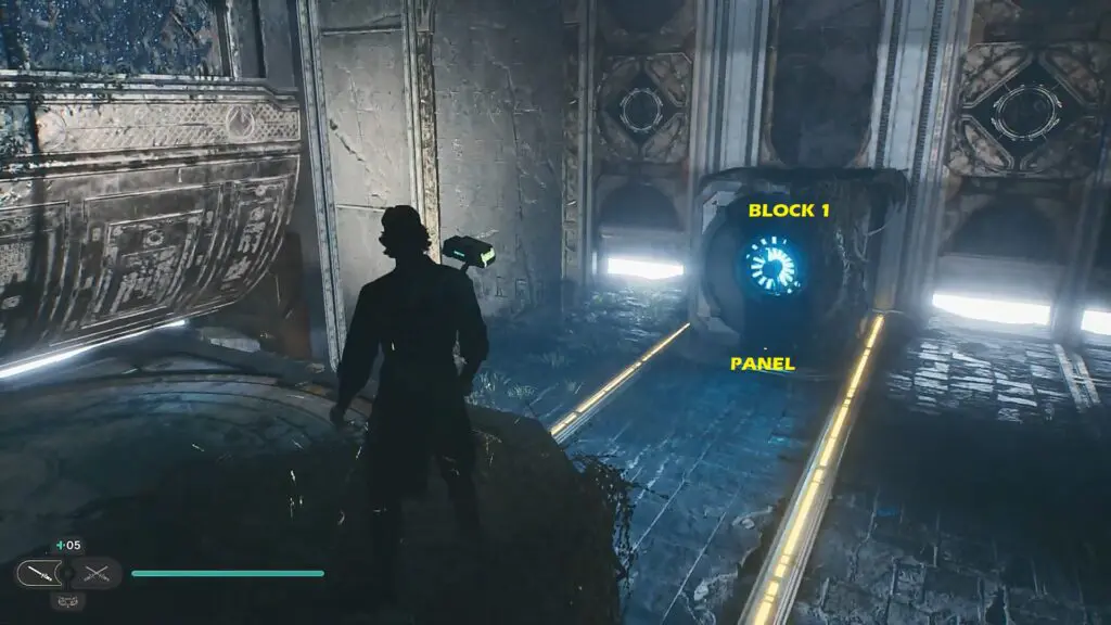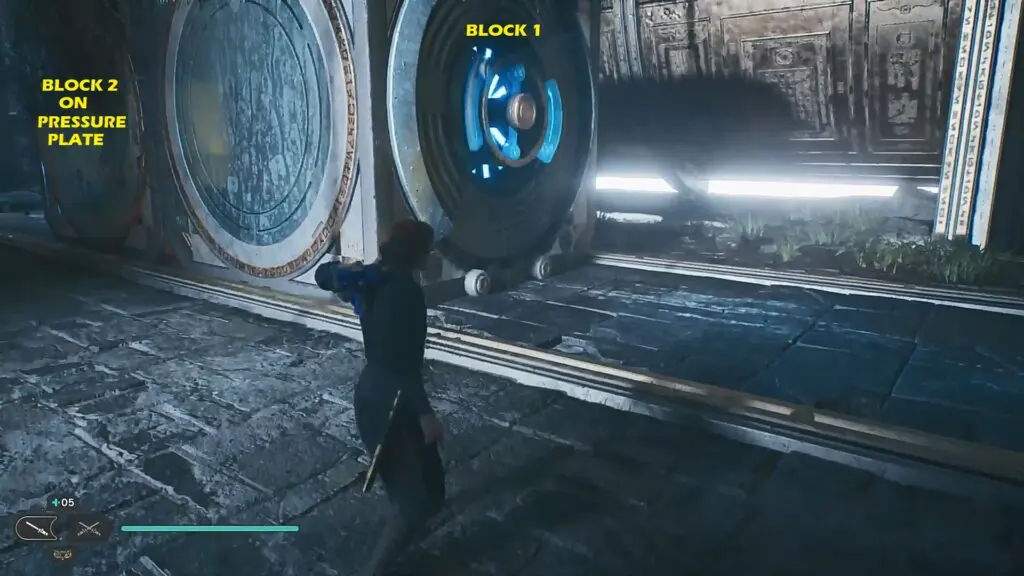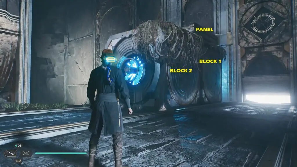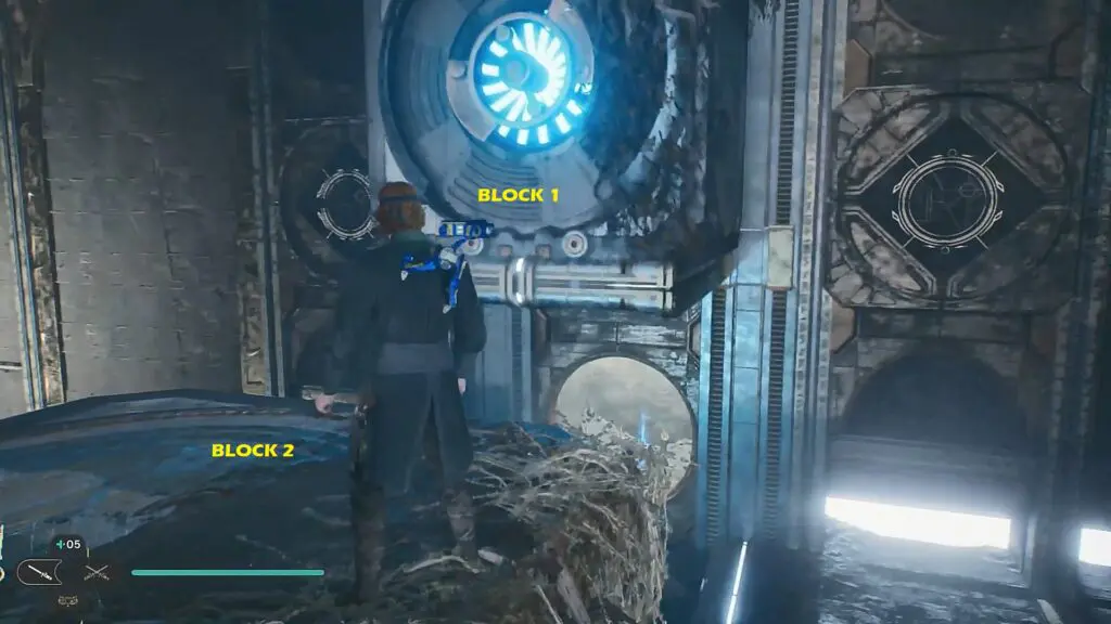 Near the previous databank, you will find a giant block (Block 1 in the picture below). Pull it out.