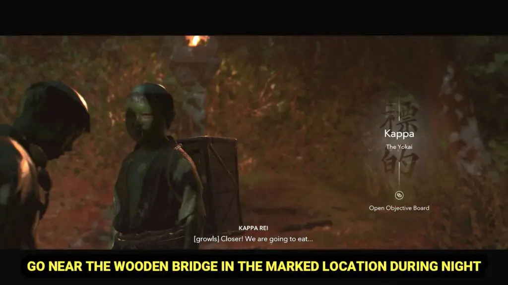 You can then use your Scouts to find their exact location. Then go to the Haunted Tatarigami Village location at night to find two green-colored children near the makeshift wooden bridge. Refer to the image below.