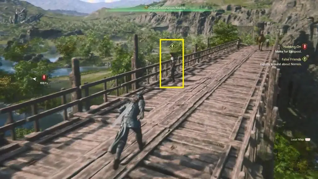 Go through the bridge and proceed down the path in the northeast direction to look for Norreis.