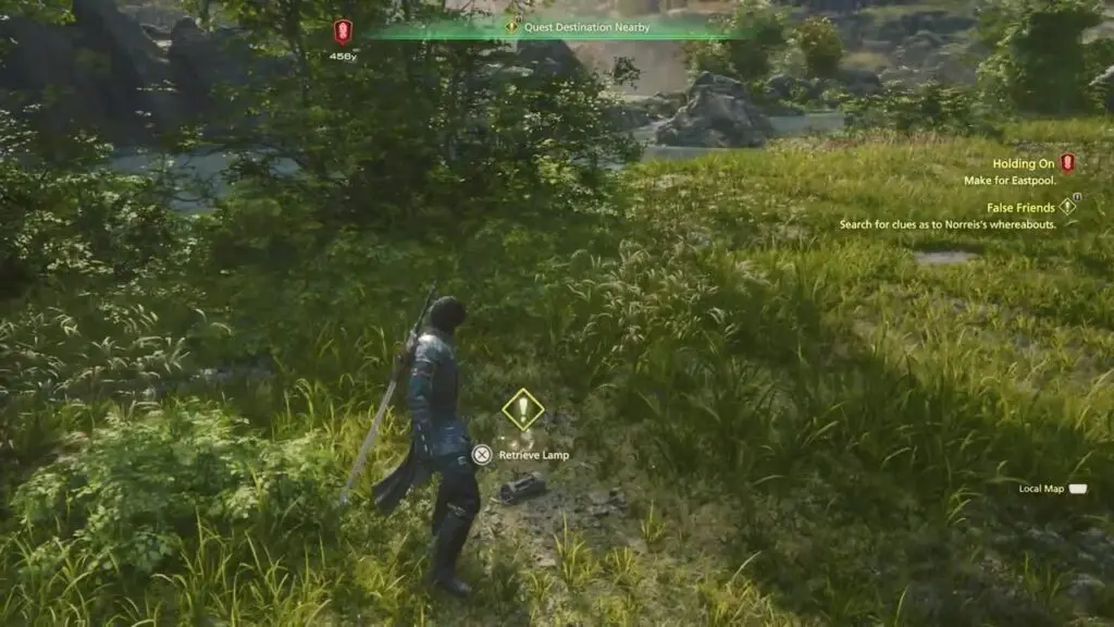 Follow the quest marker and search the area for clues. You will find a lantern lying on the grass and examine it.