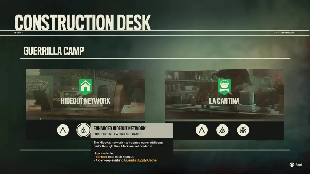 Step 1: Unlock Guerrilla Camp Facilities & Build a Hideout Network
