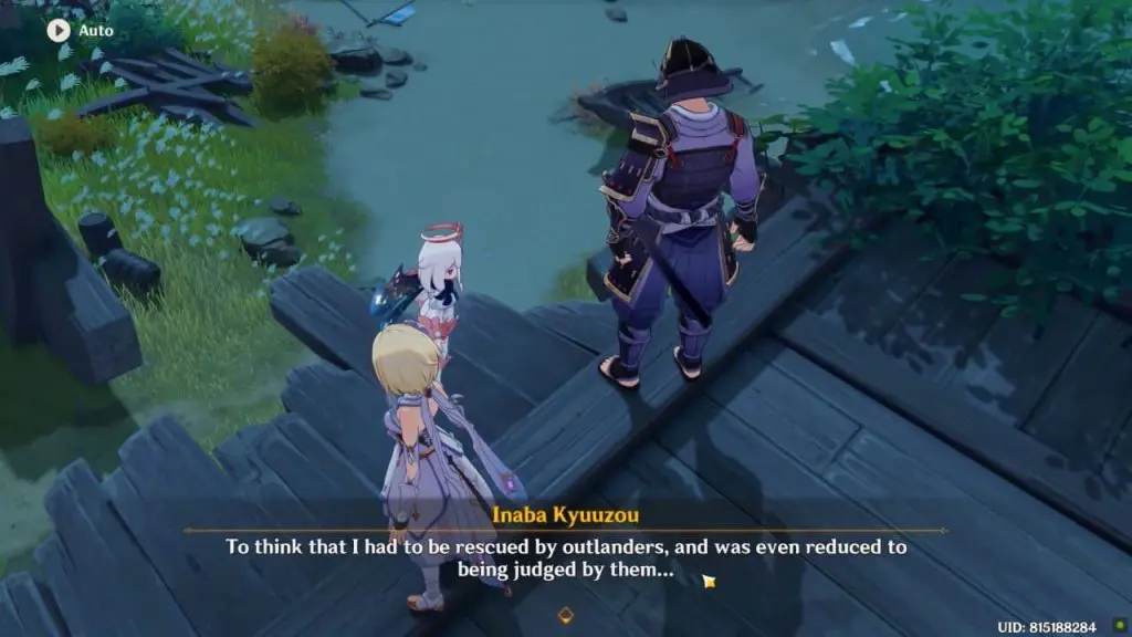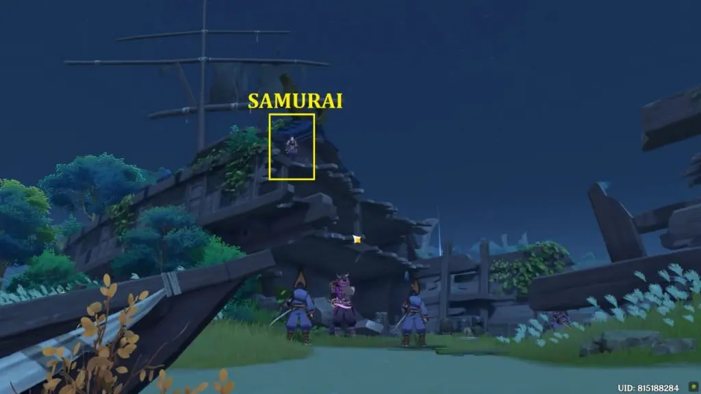 Players have to interact with the samurai named Inaba at the top of the wrecked ship. Near the beach, there is an electrogranum that you can use to fly through the air and reach the top of the ship. The samurai will then reveal his injury and request additional assistance in clearing a pirate camp.