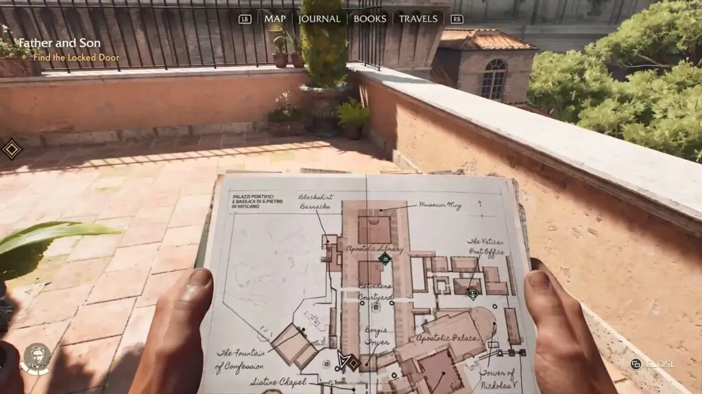 Progress through the fieldwork sidequest ‘A Nun in Trouble’, where you have to rescue NPC Giuliana and receive Giuliana’s Key from her for a room on top of the Borgia Tower.