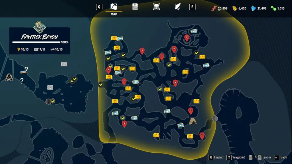 Maneater: Fawtick Bayou All Collectible Locations | License Plates, Landmarks & Nutrient caches Post published:May 23, 2020 Post category:Maneater In Fawtick Bayou Area there are following collectibles:10 License Plates10 landmarks17 Nutirent CachesCheck the Below Map For Location of all the items To be able to get some of the items you will need to reach Adult Shark level. Check out the videos below to check how to get these collectibles. Fawtick Bayou: All License Plate locations Fawtick Bayou: All Landmark locations Fawtick Bayou: All Cache locations