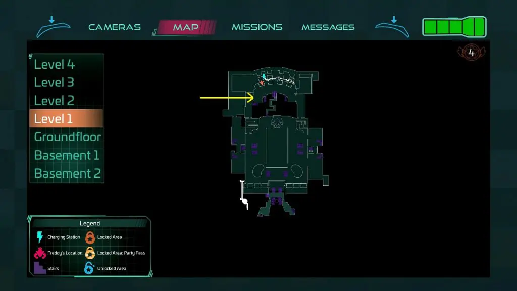 As the mission starts, go through the shutter door near Freddy’s Room as shown in the picture below. After going through the shutter door, you will enter the Parking area.