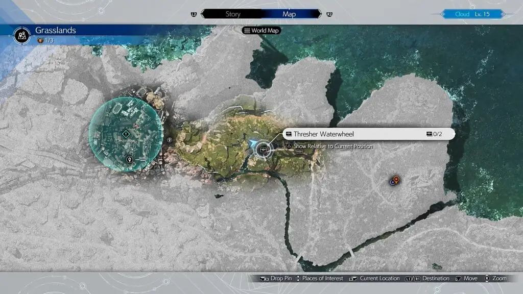 This guide shows the locations of the two treasure chests in the Thresher Waterwheel area in the Final Fantasy 7 Rebirth game, which released on 29th February 2024. Thresher Waterwheel is in the Grasslands at the location shown in the picture below.