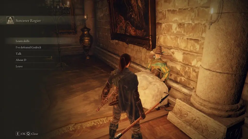Talk to Sorcerer Rogier in the Roundtable Hold and finish all the chat options. You will receive Rogier’s Rapier +8 from him