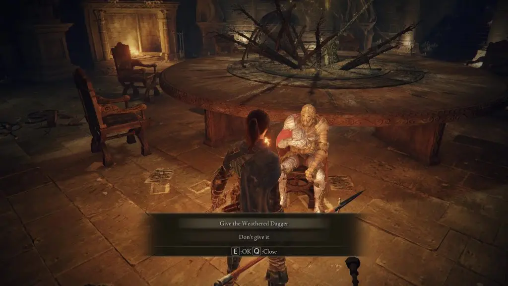 Keep talking to Fia after boss fights. Eventually, you will get the “May I ask you a favor?” chat option. Select this chat option, and she will give you a Weathered Dagger. Fia will ask you to find the owner of this dagger and return it to him.