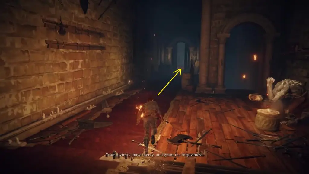 Come back to the Roundtable Hold after some time. You won’t find Fia in her room. Go past the blacksmith to the room as shown in the picture below. You will find D dead there and Fia will leave the Roundtable Hold. You will get Twinned Armor Set from D’s body. Go to Rogier and you will find him dead too. Come back later and you will get Spellblade’s Armor Set from Rogier’s body.