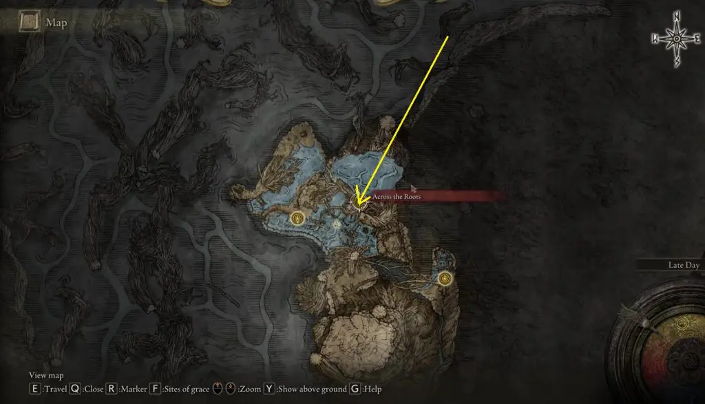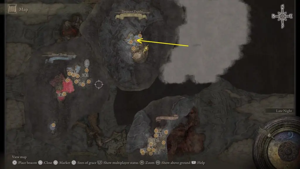 Continue ahead towards the west and you will reach Deeproot Depths Site of Grace as shown below.