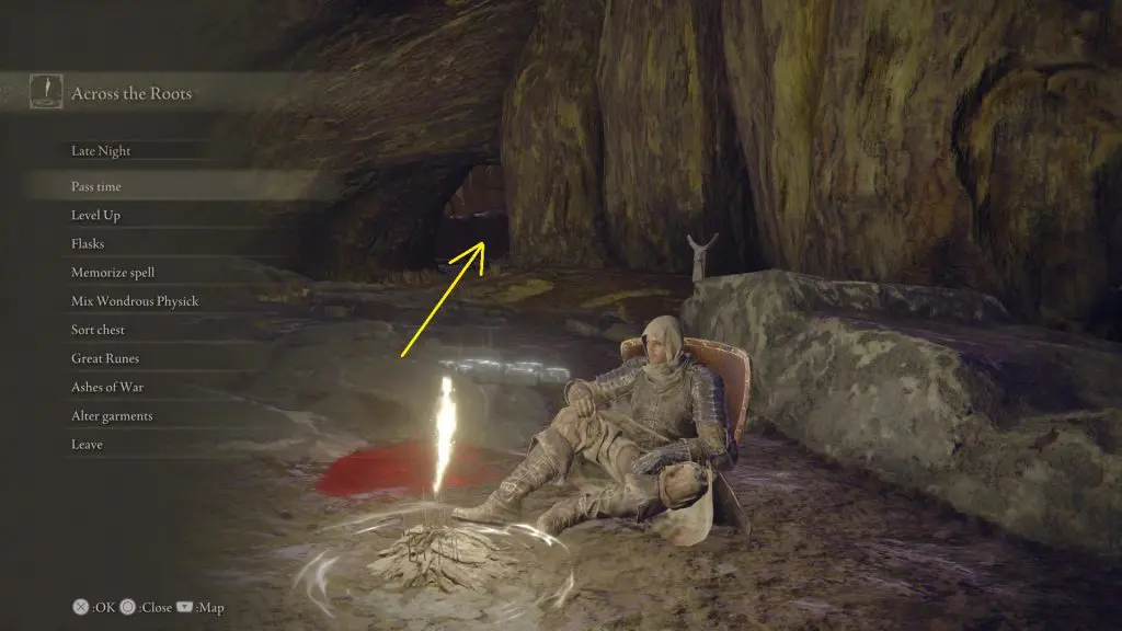 From the Deeproot Depths Site of Grace, turn right and walk underneath the tree roots as shown in the pictures below.