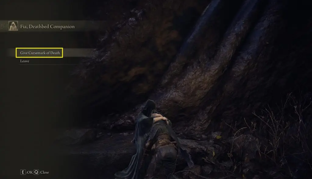 Go back to Fia in the Deeproot Depths and give her the Cursemark of Death.