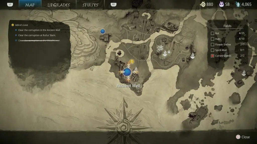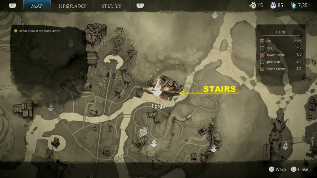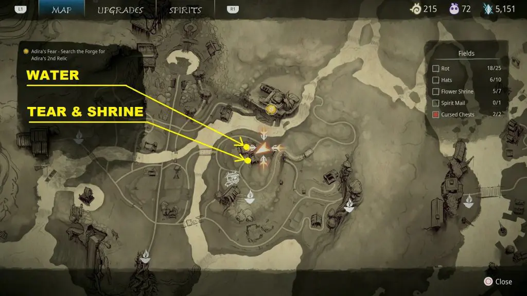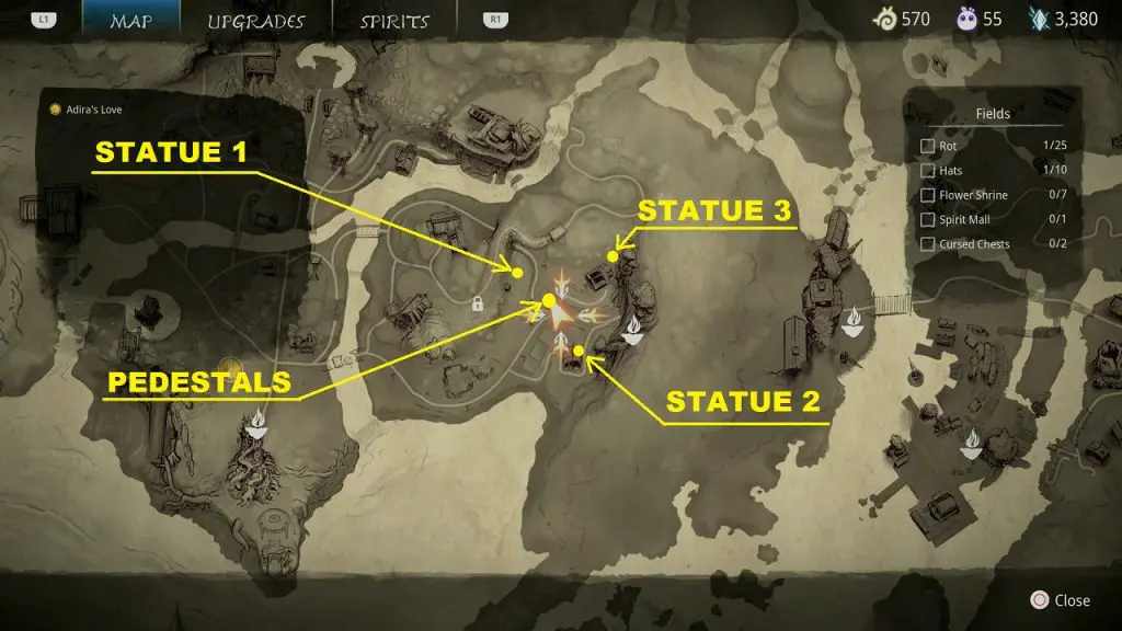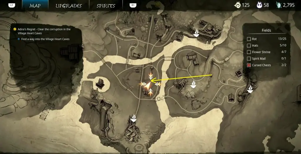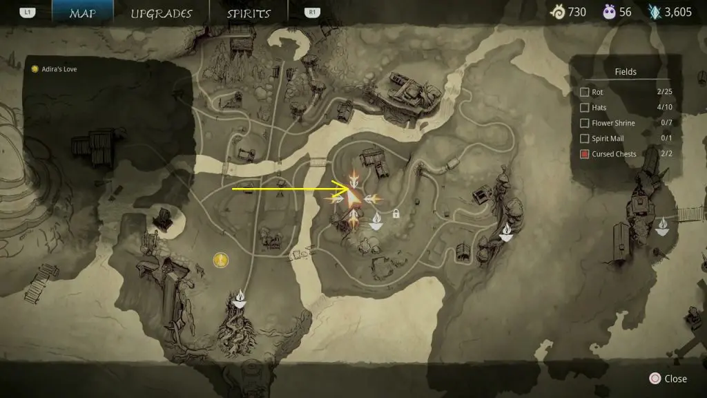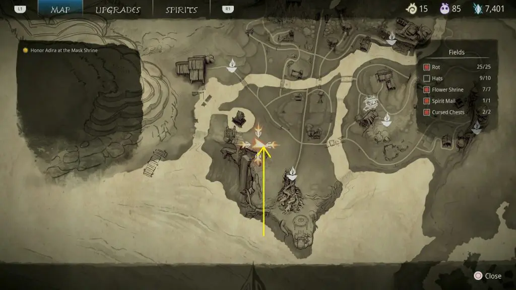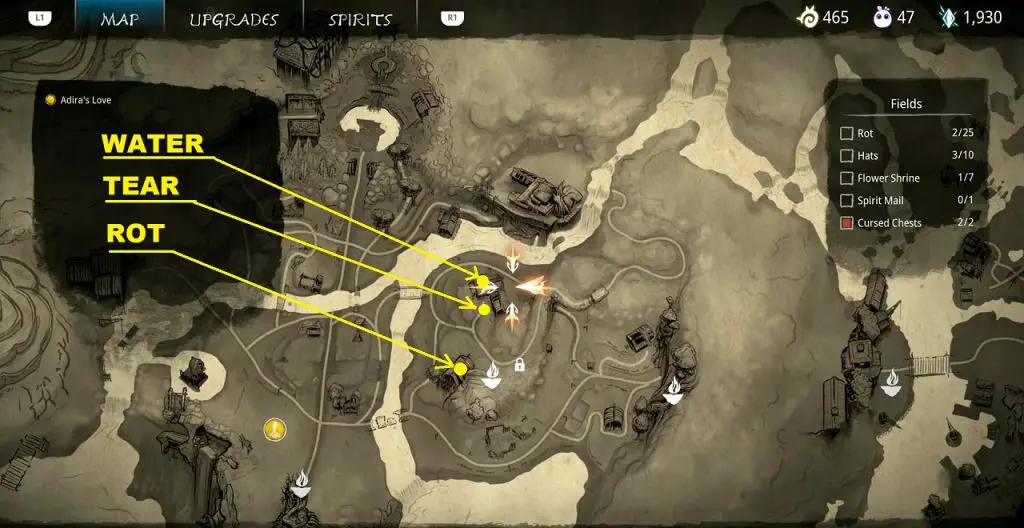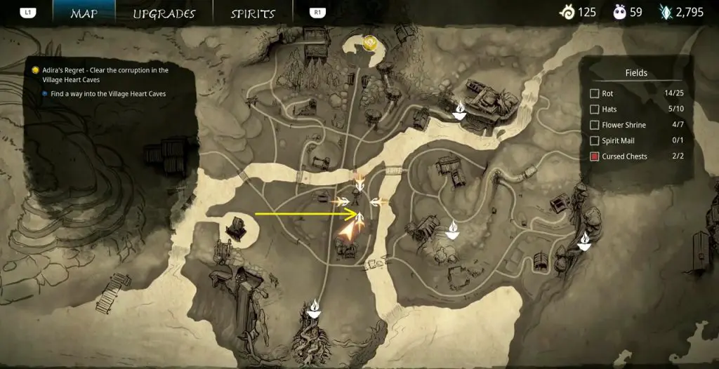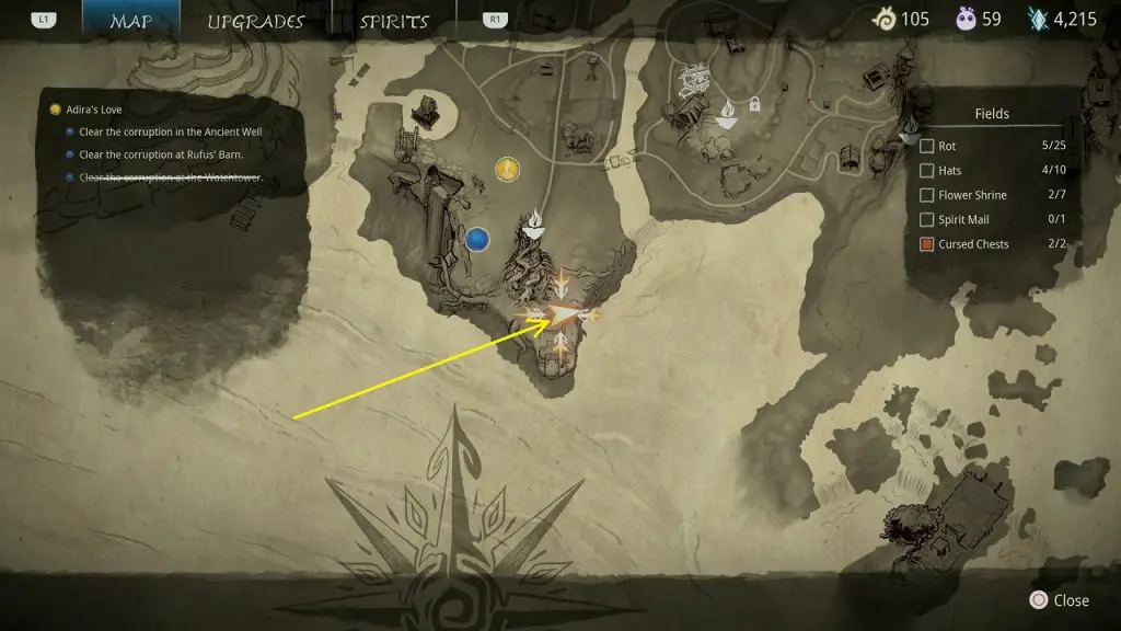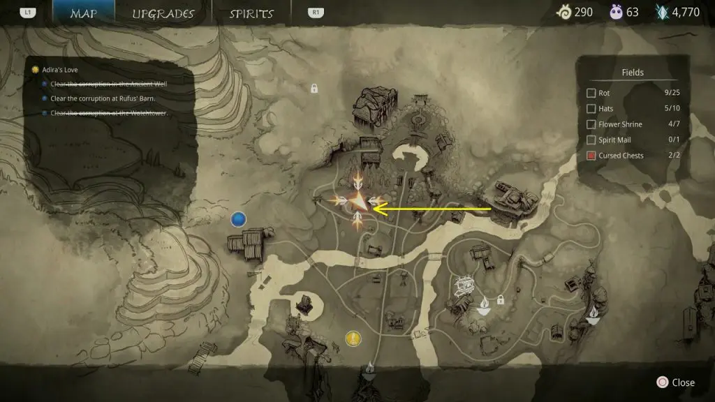 This guide shows how to get all the collectibles in the ‘Fields’ area in ‘Kena: Bridge of Spirits’. There are a total of 45 collectibles in the Village Heart (25 Rots, 10 Hats, 7 Flower Shrines, 1 Spirit Mail, 2 Cursed Chests).