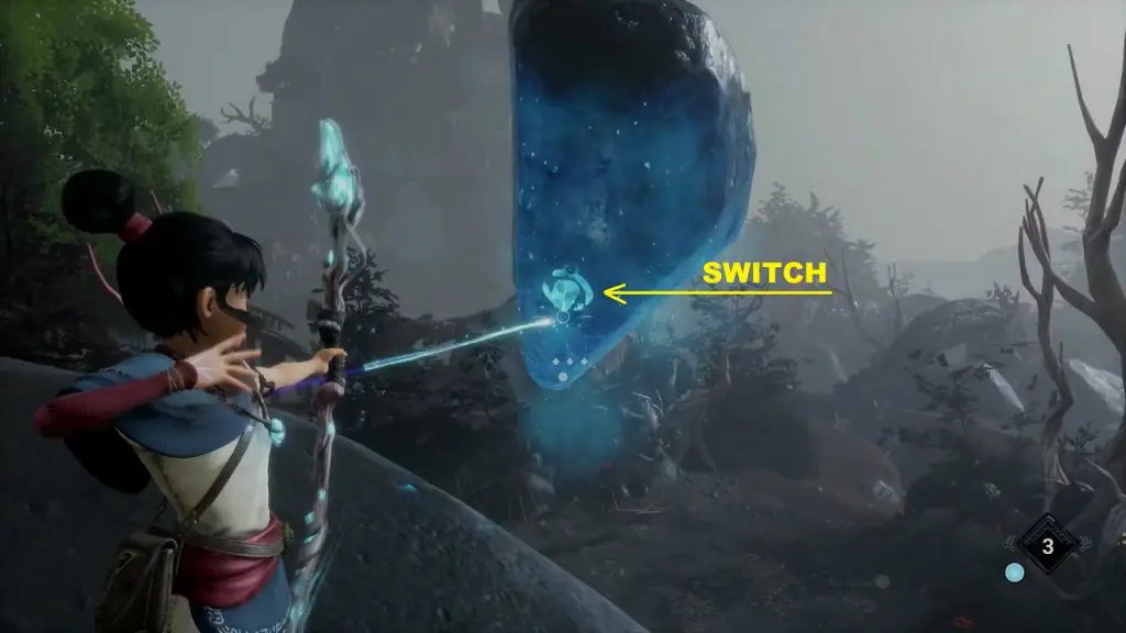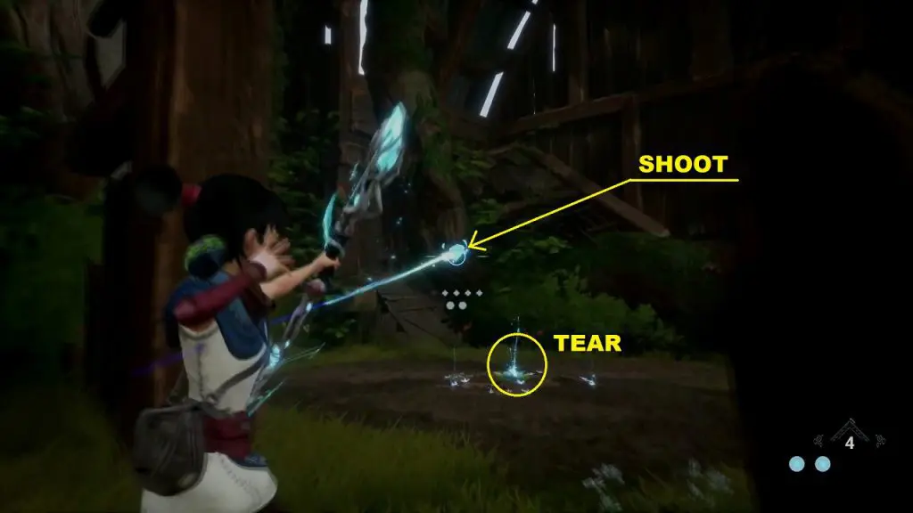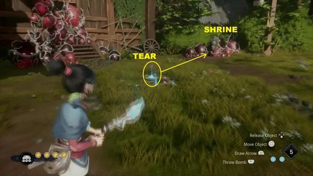 You will find a tear at the location marked below. Shoot the mechanism near the tear and it will throw water on the tear. This will make the plant grow. Summon Forest Tear from the plant and guide it to the Flower Shrine location as shown below and cleanse the shrine.