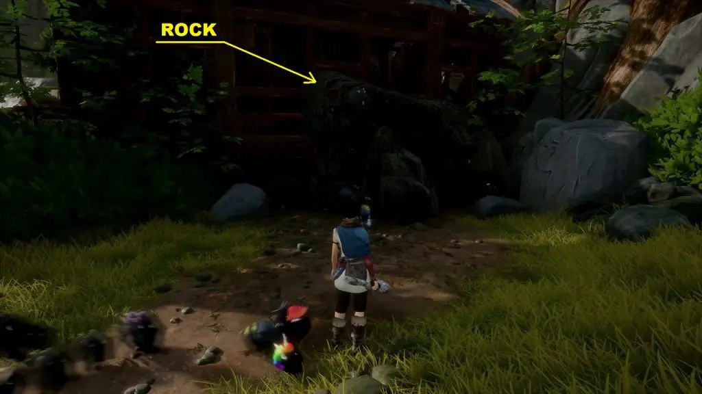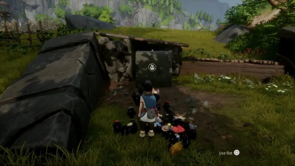 You will get this rot from the cursed chest inside the house at the location shown below. The house entrance is blocked with rocks. Hit the rocks with a bomb to clear the entrance. Then go inside and interact with the cursed chest. Defeat all the enemies within 35 seconds to complete the challenge. Then open the chest to get the rot.