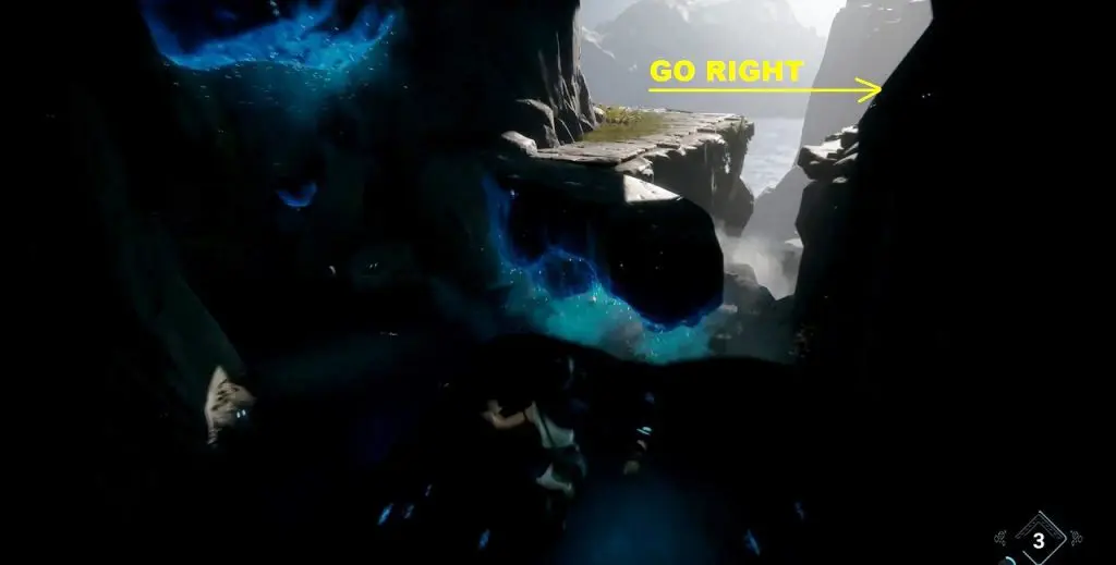 When the water level has risen up, swim to the left side. then go through the path shown below to reach the Spirit Mail.