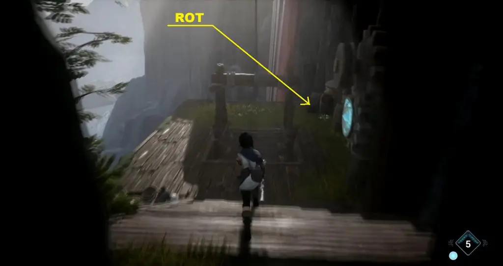 Stand on the purple symbol at the location shown below and use pulse. This will start a shooting mini-game. Shoot 7 targets to complete the challenge and you will get the rot.
