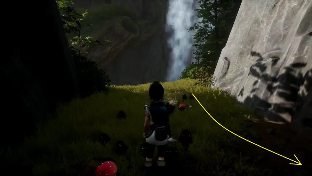 From the previous location, keep moving ahead in the cave. Eventually, you will come out from the other side of the cave. After coming out, go right till the end of the path until you reach a waterfall. The rot is here underneath a log as shown in the third picture below.