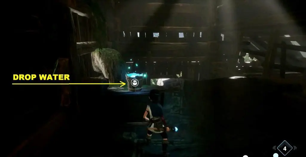 Summon forest tear from the plant and guide it through the bridge to the button on the platform on the right side. Use the forest tear to press the button. This will make the water level rise up in the cavern.