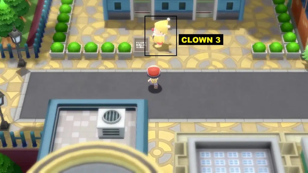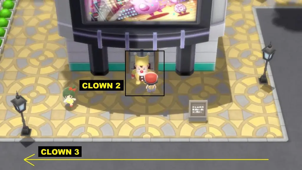 After talking to the second clown, continue in the same path in the left direction. You will find the Clown standing in front of The Poketch Company.