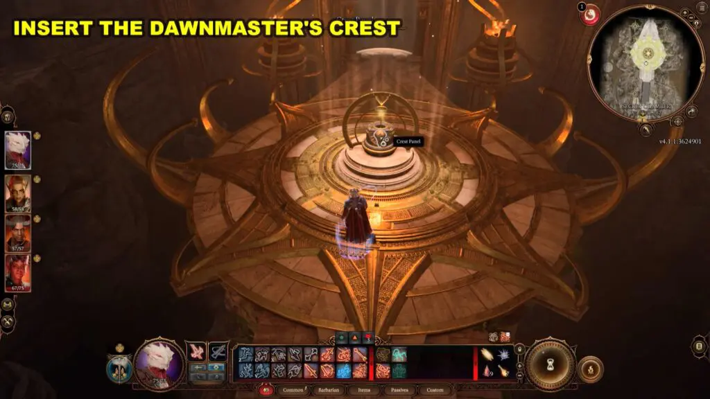 Finally, enter the last room and proceed to the Crest Panel and insert the Dawnmaster’s Crest.