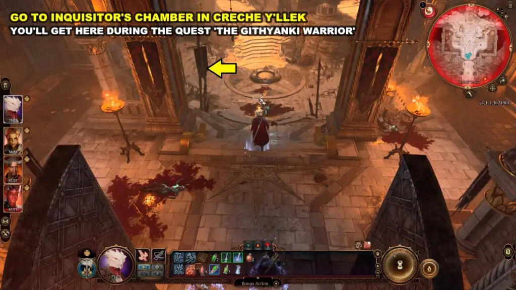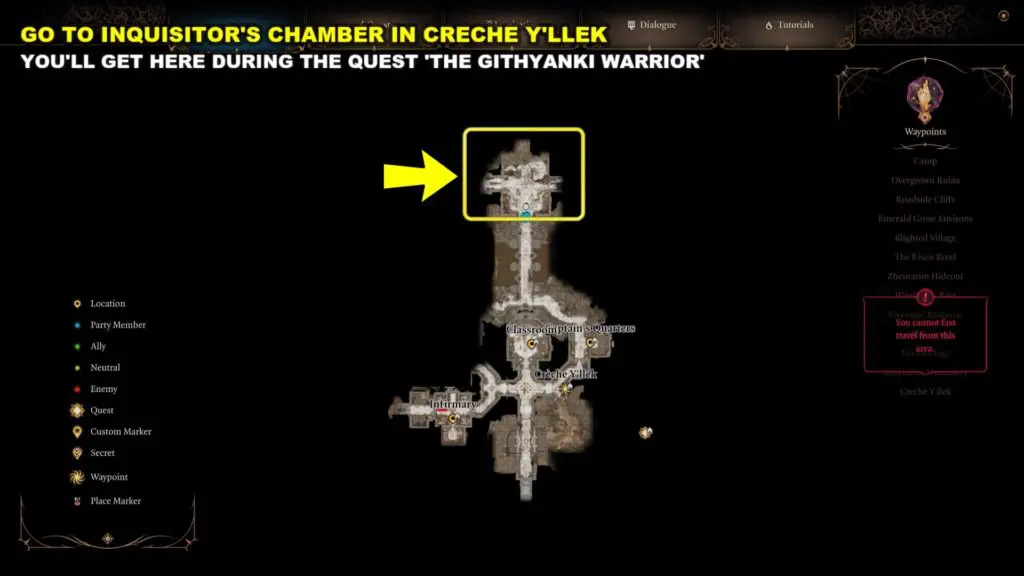Next, head to the Inquisitor’s chamber in Creche Y’llek. Refer to the below location. You’ll naturally reach this area as you progress through the story during the quest “The Githyanki Warrior”.