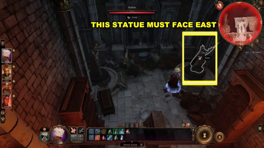 When you enter the inquisitor’s chamber, Proceed to the left. There are two statues. Adjust the one on the right side of the screen to face east, and the one on the left to face west.