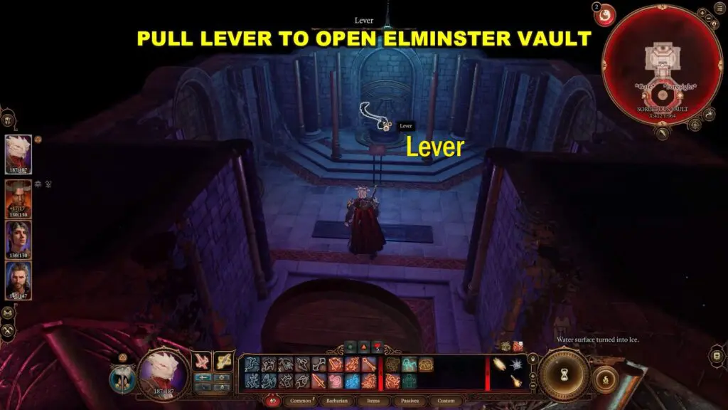 Pull the lever in the last room to open the Elminster vault.