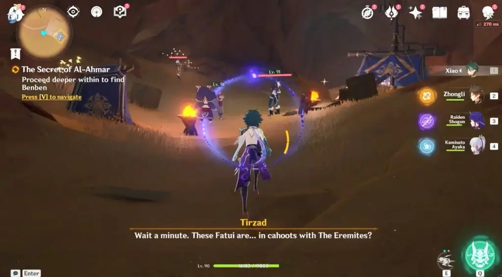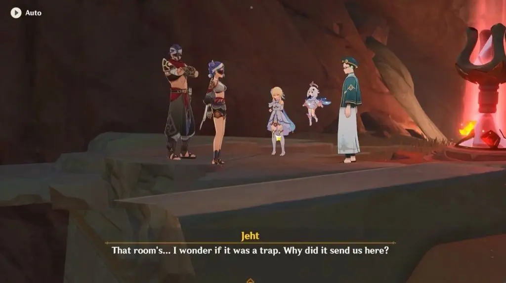 At this point in the quest, you had to find the archaeological team and defeat the Fatui who are fighting Jeht and Jebrael. At this point, you’ll need to find Benben by exploring the underground ruins.