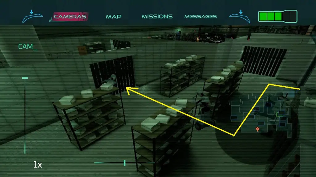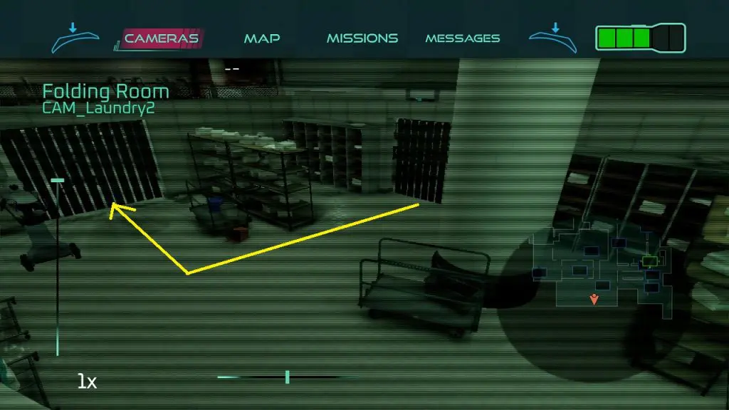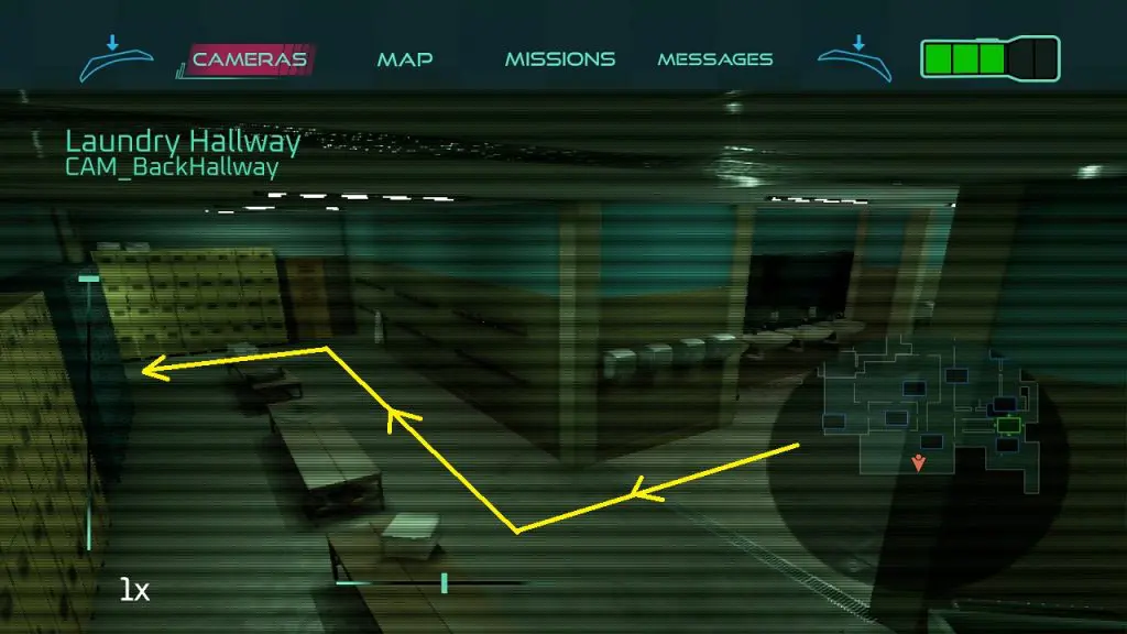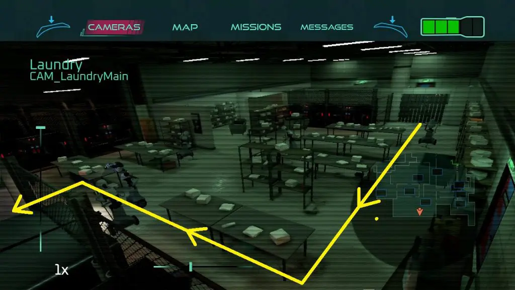Now you will arrive at the Main Laundry Hall. Here, you will have to go through the security check at the opposite side of the room. Take the path as shown in the picture below and go through the security check. Then take the door on the right side of the hallway to complete the mission.
