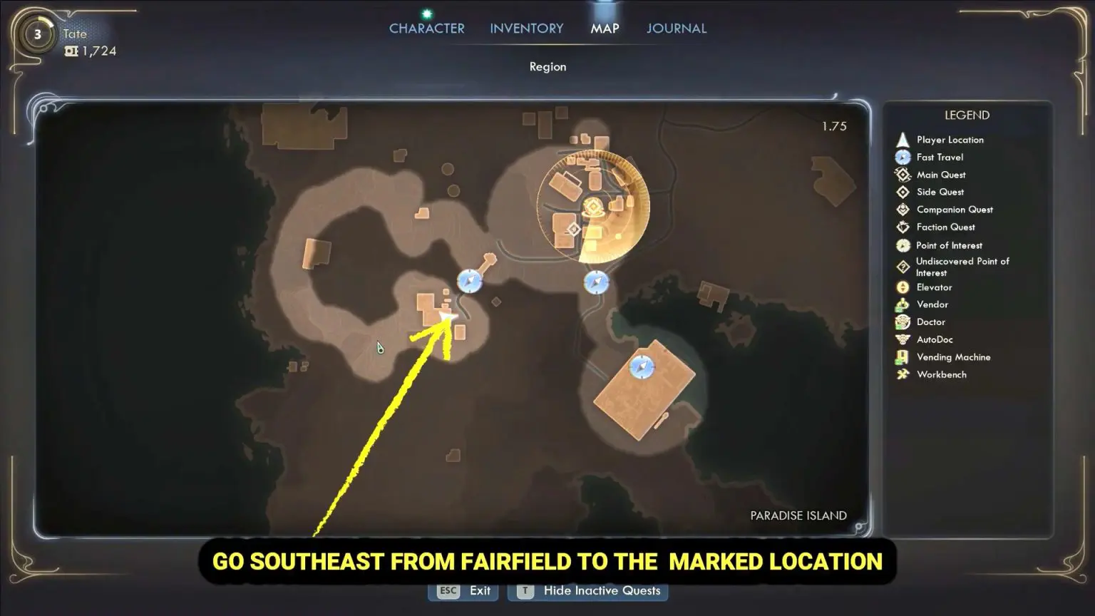 To locate Ida Rutledge for the side quest “For Whom the Bridge Tolls,” you’ll need to travel to Sovereign’s Sweet Spire Grove, which is found just southwest of Fairfield. Refer to the map below.