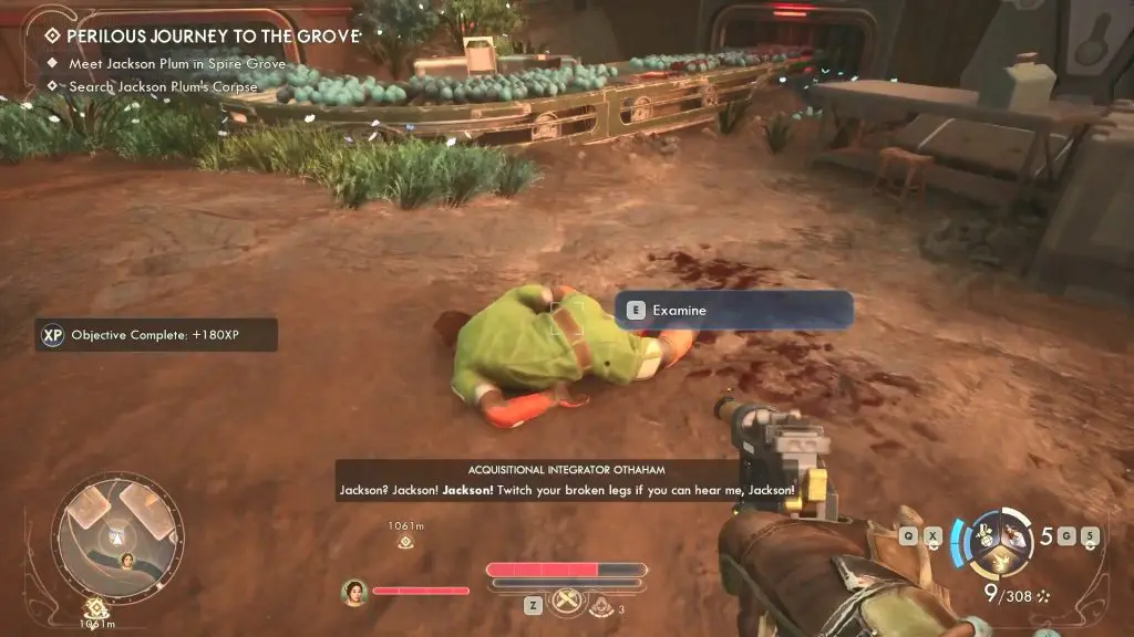 When you arrive, you’ll see a cargo elevator beside the mountain. You can either repair the elevator with an Engineering skill level 3 or higher, or choose to climb up the mountain. Once you reach the top, approach the tower in the area. As you get close, Jackson Plum will fall from above and die on impact. Examine Jackson’s body to loot Double Jump (Thruster Boots)