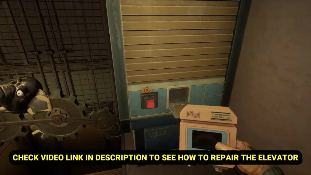 Carefully make your way back to the “Mrs. Helpful” machine area. Next to it you’ll find the elevator control machine. Insert the Repair Cassette into this machine to start the repair process.