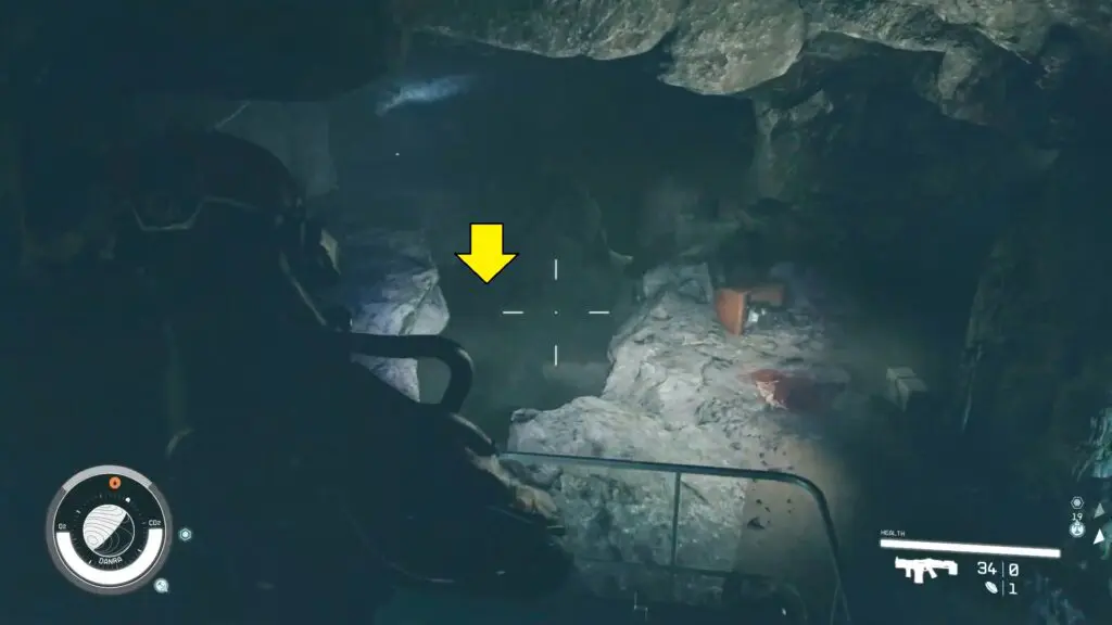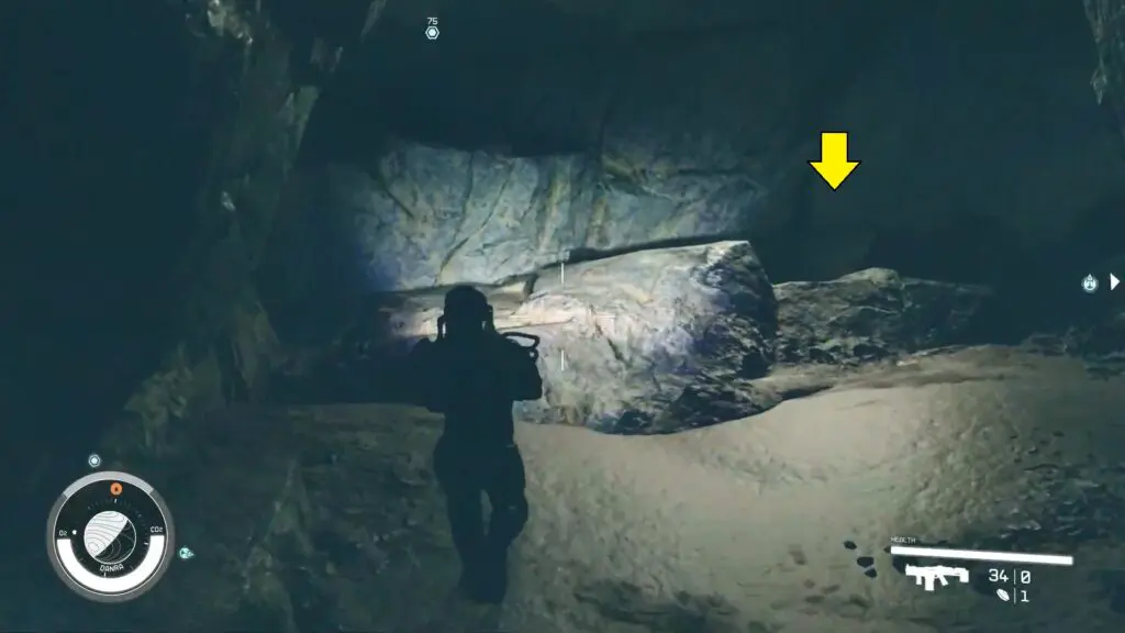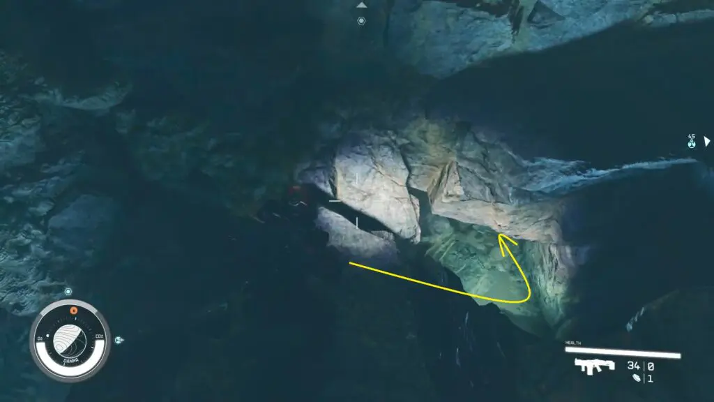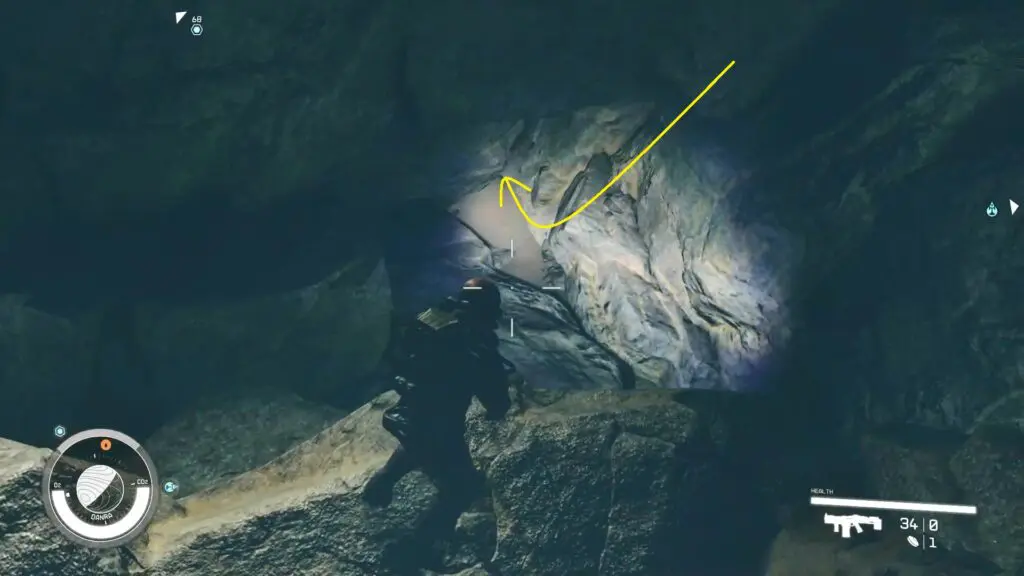 Follow the route within the cave, and when you encounter the first gap, opt to descend into it rather than cross it.