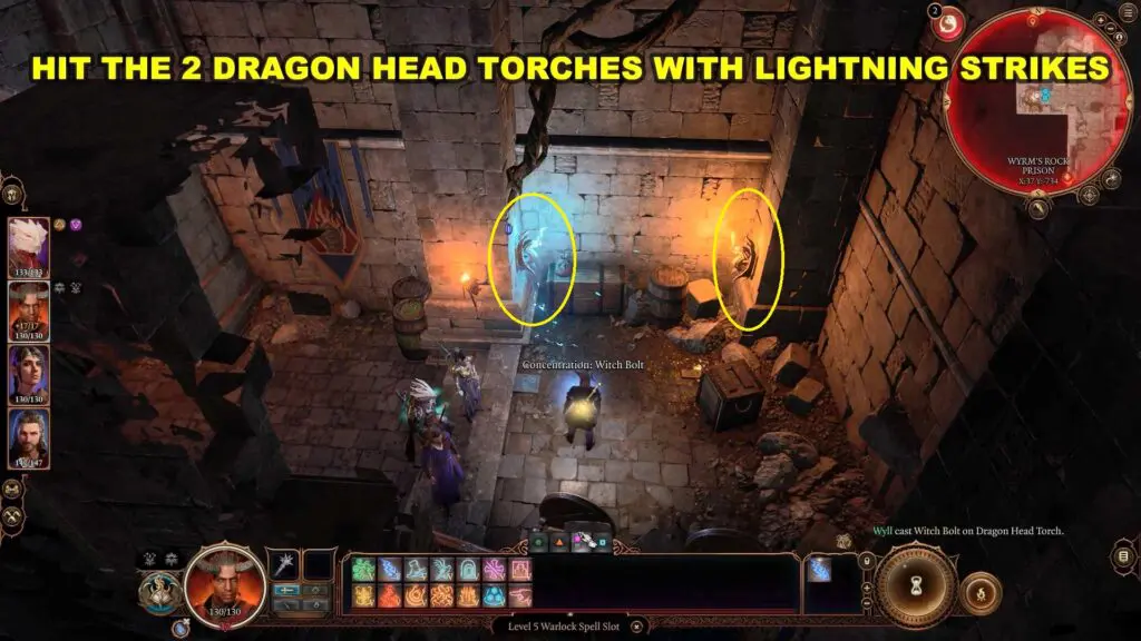 There on the wall, you will find a pair of Dragon Head Torches. To activate them, hit the Dragon Head Torches with some type of Lightning strike and turn their flames blue.