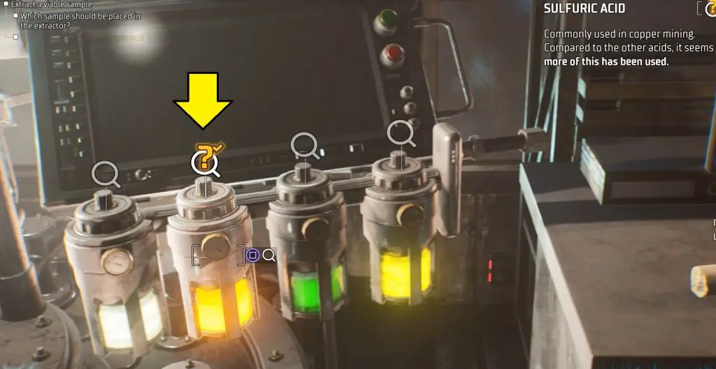Next, leave the mine and enter the lab. Interact with the lab table to start the puzzle.