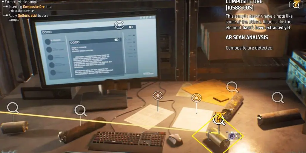In this case, you will go inside a mine and scan 3 mining samples. Finally, interact with a lab to analyze the samples.