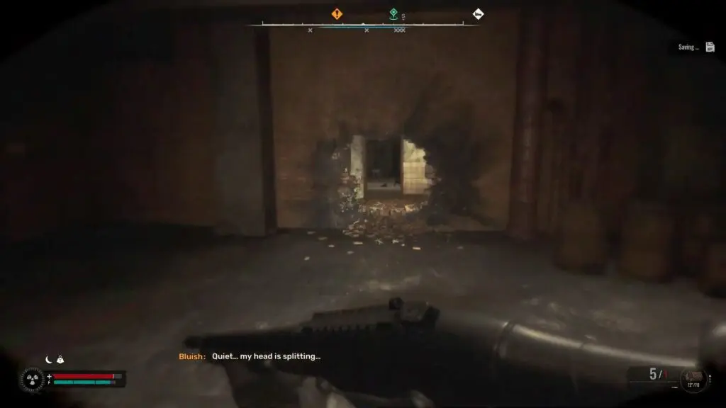 After locating the NPC in the North, make your way into the WPS Basement to retrieve the Inductor. Inside the basement, battle through the linear hallways filled with zombies until you arrive at a large storage area. Enter the next hallway through the broken section in the wall.