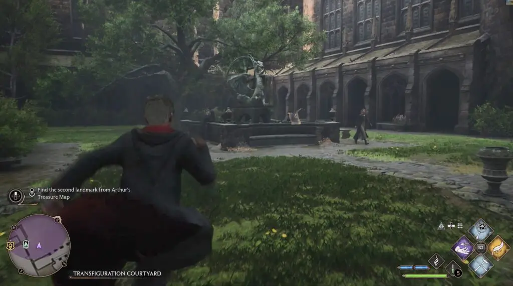 This walkthrough will guide you through all objectives “Find the landmark from Arthur’s Treasure Map” of the side quest Cache in the Castle in the game Hogwarts Legacy.