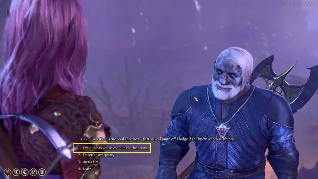 To start the quest, fast travel to the Underdark – Beach teleport waypoint where you will meet Gekh Coal (NPC). Don’t fight with him. He will tell that a duergar ordered them to find a runaway slave if they wanted to live. The slave has a pair of boots that belong to the duergar’s sergeant.